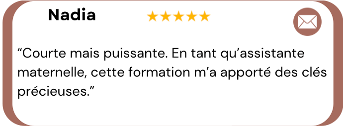 Une attestation de suivi de formation (Pour les assisantes maternelles, cela vous permet de justifier votre engagement dans une démarche d'amélioration continue de votre qualité d'accueil, justification demandée pour le renouvellement)