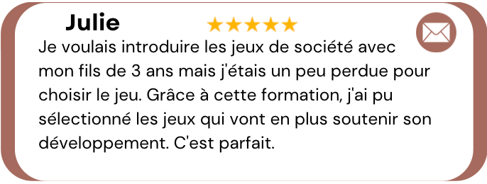 Elle vous permettra de choisir des jeux de société simples et concrets pour les stimuler au quotidien parmi une liste de plus de 70 jeux pour tous les âges !